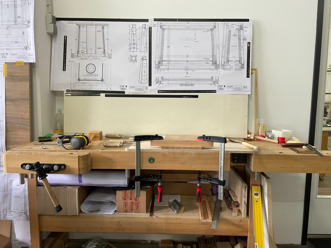 Mitte März ging es schließlich von der Werkstatt zurück an den Schreibtisch und vom Schreibtisch direkt an das DIN A0 Zeichenbrett.