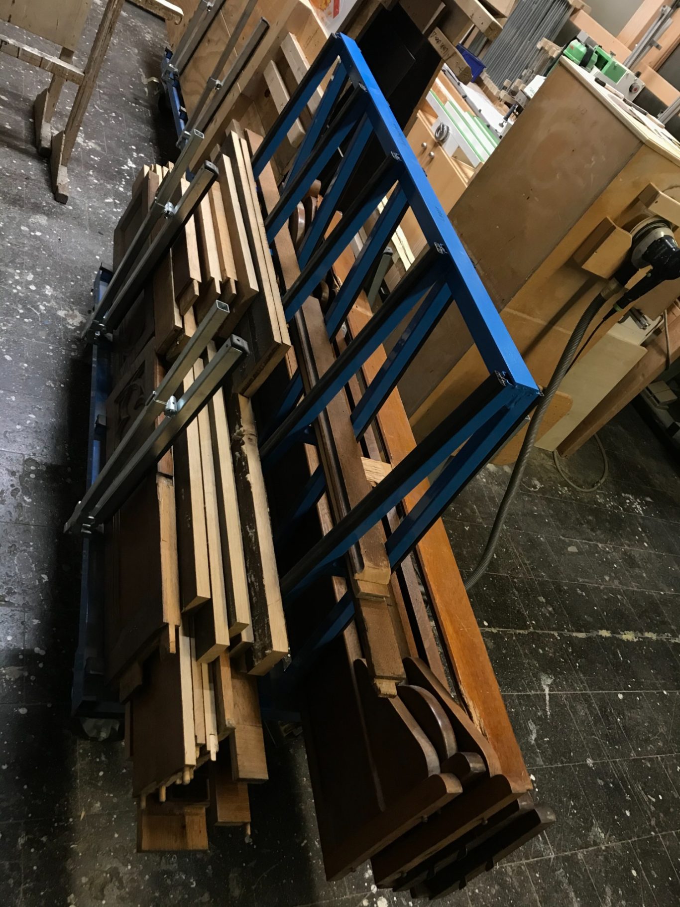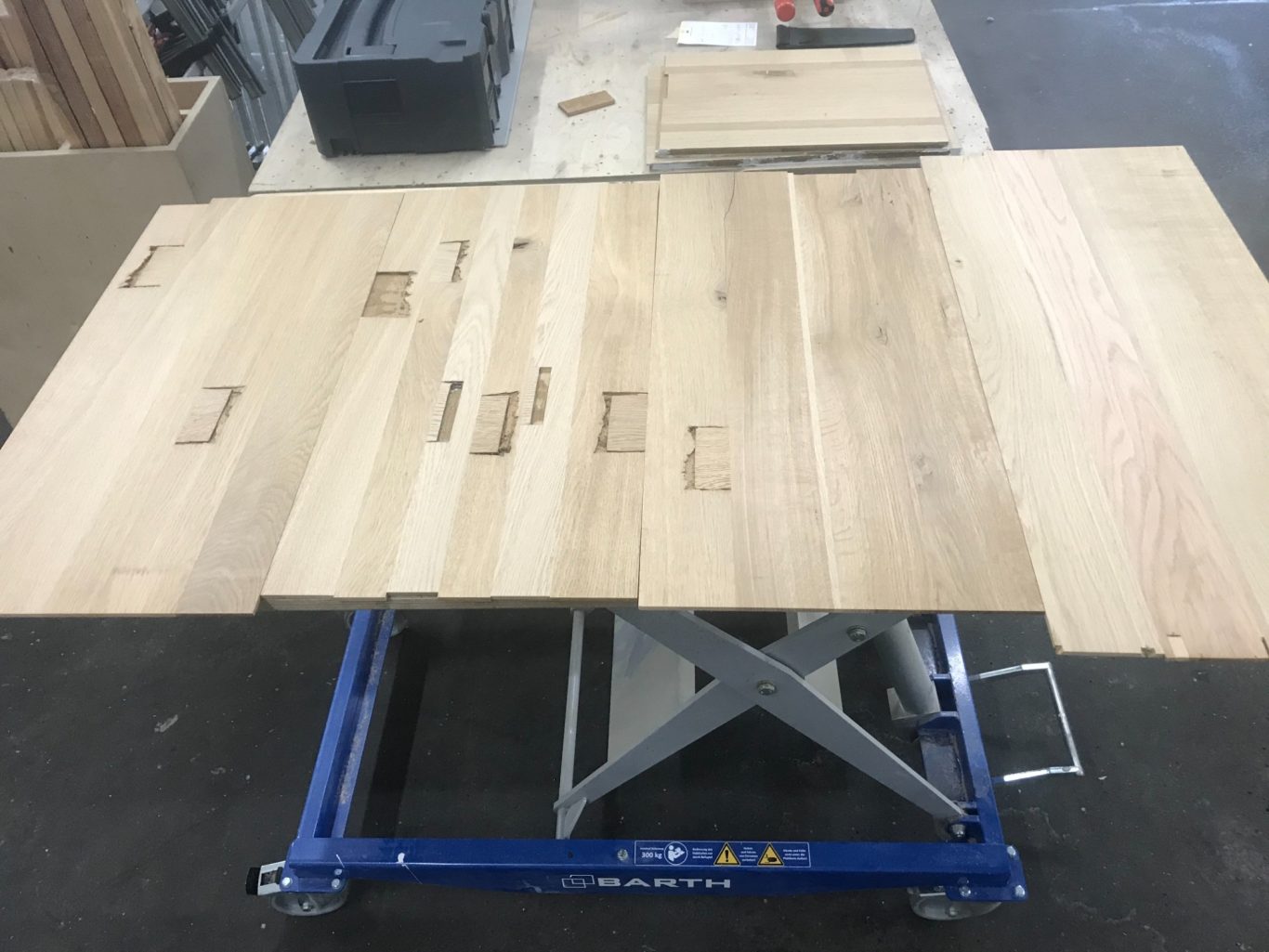 Die erste Schwierigkeit lag definitiv in der Holzauswahl. Das Altholz, welches teilweise nicht unterschiedlicher hätte sein können, bereitete viele knifflige Situation, die oftmals mehr Zeit in Anspruch genommen haben, als es die durchschnittliche Eiche-Bohle, oder Leimholzplatte getan hätte.