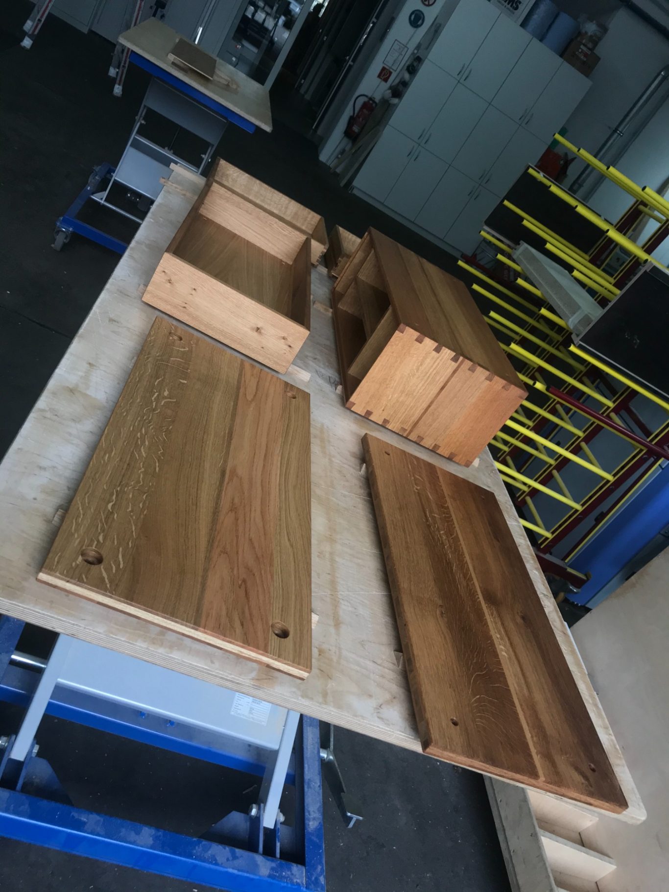 Einige wenige Beispiele dafür wären das Zinken, aber vor allem der Zuschnitt und die Herstellung der Dreischichtplatten.
